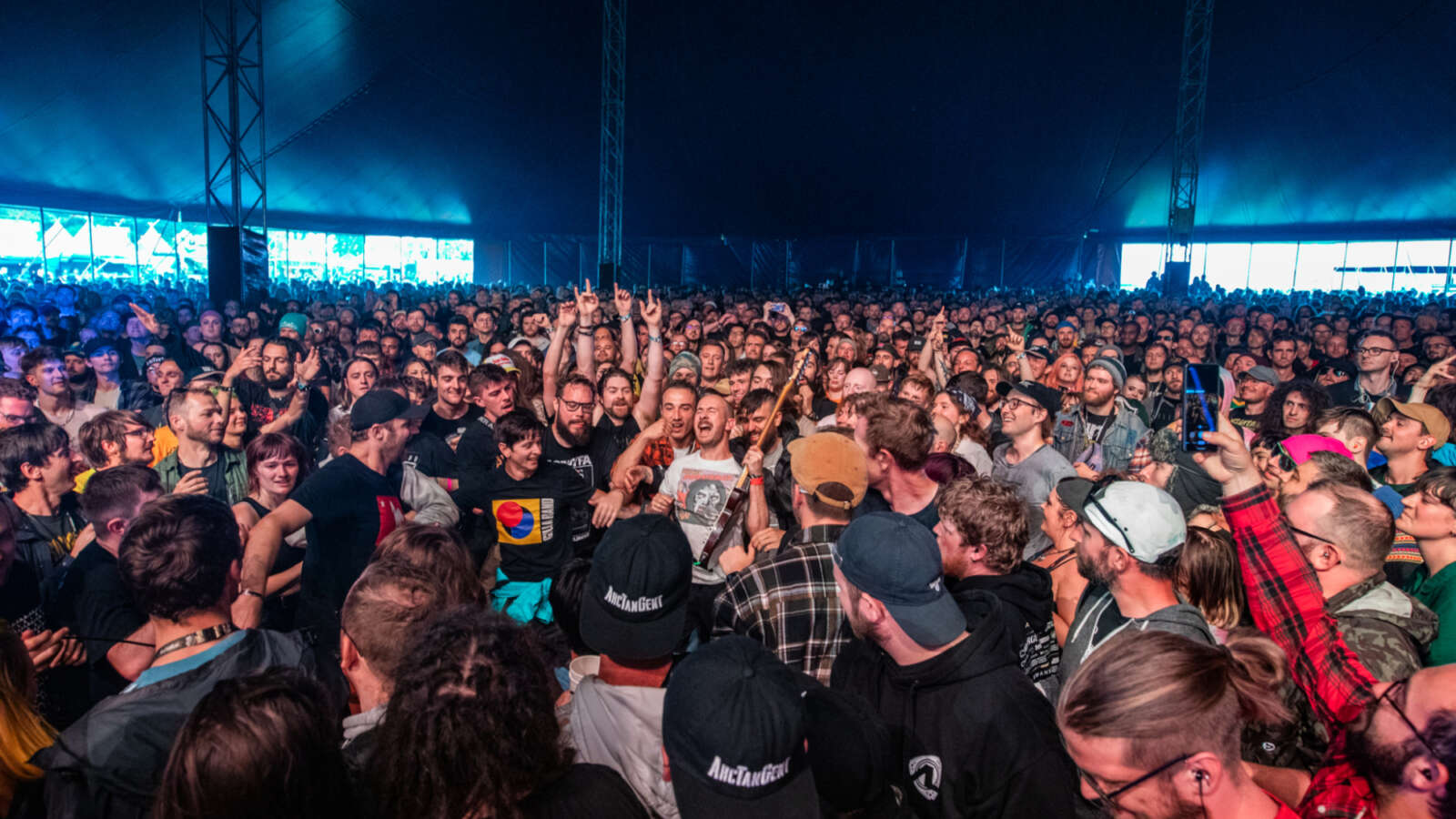 From the outside, this would seem to be a Serious lineup, for Serious music fans. Yet that doesn’t tell half the story of the weekend. I’ve been going to festivals for three decades now, and what I saw at ATG was one of the most joyful, celebratory crowds of people having the weekend of their lives. There was no fighting and no aggro, beyond the moshpits, which are paradoxically a place of solidarity and caring. Very few people talking through sets, and most noticeably, few instances of people filming entire sets to watch back later on tinny phone speakers. There is one notable, and understandable, exception to this, but I’ll come back to that later.